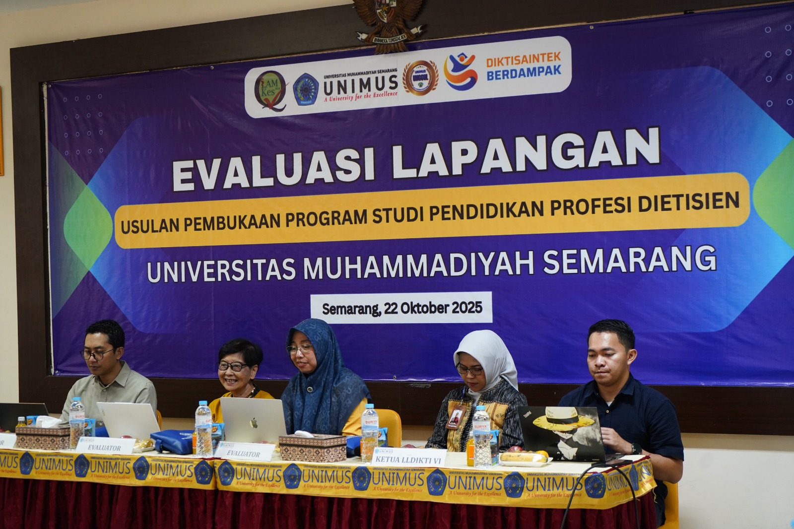 Dalam sambutannya, Rektor UNIMUS Prof. Dr. Masrukhi, M.Pd. menyampaikan apresiasi atas kunjungan tim asesor dan menegaskan kesiapan UNIMUS dalam membuka program studi baru yang relevan dengan kebutuhan masyarakat dan dunia kerja. “Program Studi Pendidikan Profesi Dietisien ini diharapkan dapat menjadi salah satu keunggulan UNIMUS dalam bidang kesehatan, sekaligus menjawab kebutuhan tenaga profesional di bidang gizi dan dietetik yang semakin meningkat,” ujar Prof. Masrukhi. Sementara itu, Kepala Lembaga Layanan Pendidikan Tinggi (LLDIKTI) Wilayah VI Jawa Tengah, Prof. Dr. Ir. Aisyah Endah Palupi, M.Pd., menyampaikan bahwa kegiatan evaluasi lapangan ini bukan sekedar prosedur administratif, melainkan langkah strategis untuk menjamin mutu penyelenggaraan pendidikan tinggi.